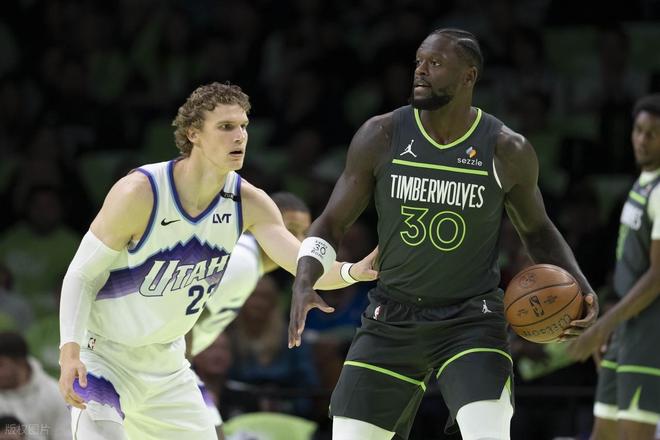 森林狼狂屠爵士,兰德尔化身全能战士。上半场他9投5中,三分2中1、罚球4中4,已经拿到15分9篮板10助攻1抢断,正负值高达+39。