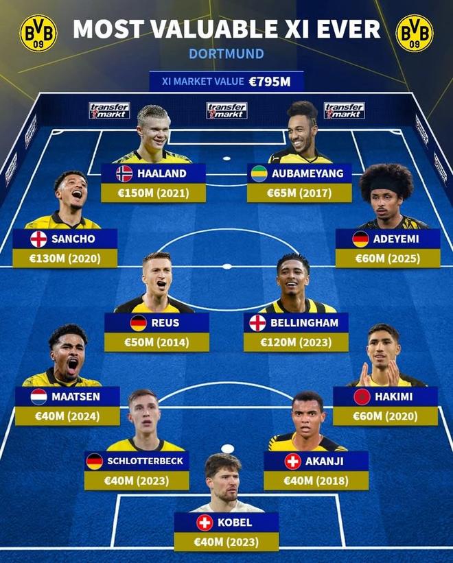 德转列多特蒙德历史最贵11人阵容: